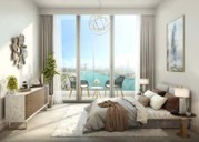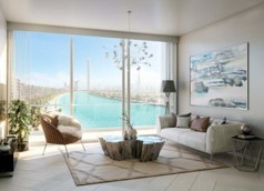 Panoramafenster mit Blick auf den Kanal und den Burj Khalifa